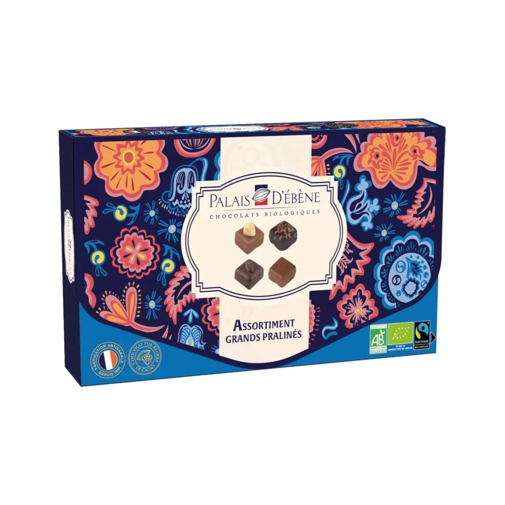 Succombez au plaisir intense de notre assortiment grands pralinés chocolat noir 72% et lait 37% de cacao. Un instant gourmand unique, sublimée par des ingrédients bio et équitables.