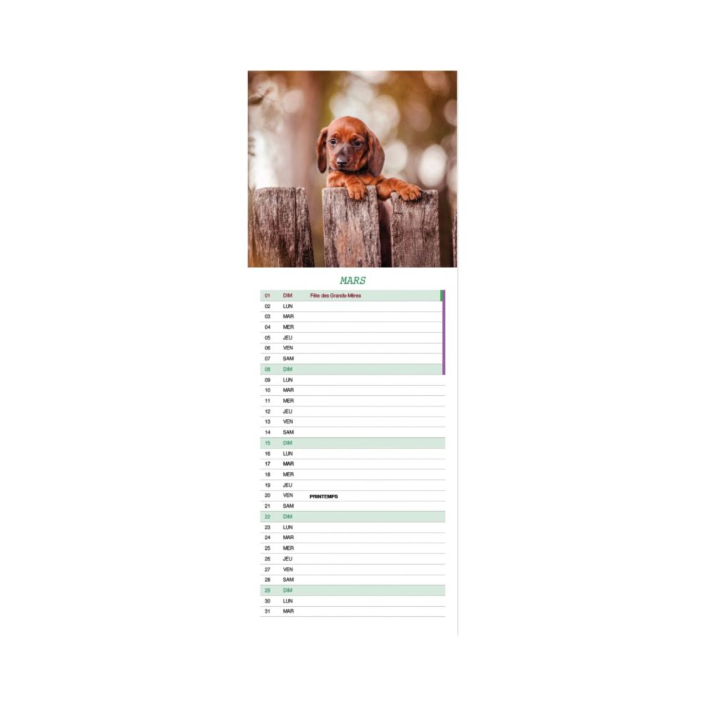 Chaque page met en scène un adorable chiot, apportant une touche de douceur et de bonheur à votre quotidien, mois après mois.