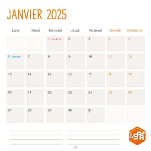 J’adore les bouilles sympathiques de ces loulous. Pratique, des cases larges pour écrire des RDV.