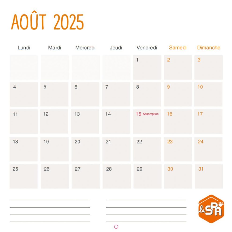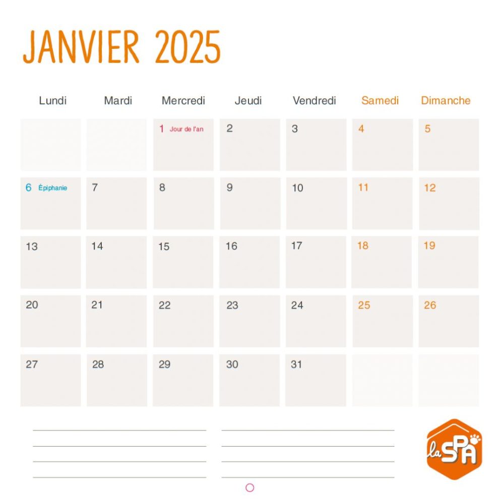 Grandes cases idéales pour noter des RDV et un grand espace en pied de page pour des commentaires. Les photos d’animaux sont très belles.
