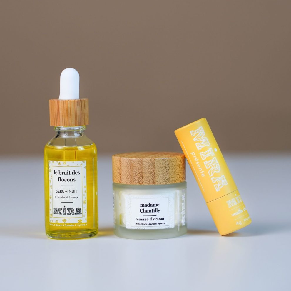 – Le Bruit des Flocons (30 ml) : notre sérum d’hiver par excellence. Trois huiles françaises (carthame, arnica, jojoba) et une odeur cannelle-orange qui rappelle les biscuits et les soirées au coin du feu. Apaisant, nourrissant, un petit trésor à glisser dans toutes les poches.