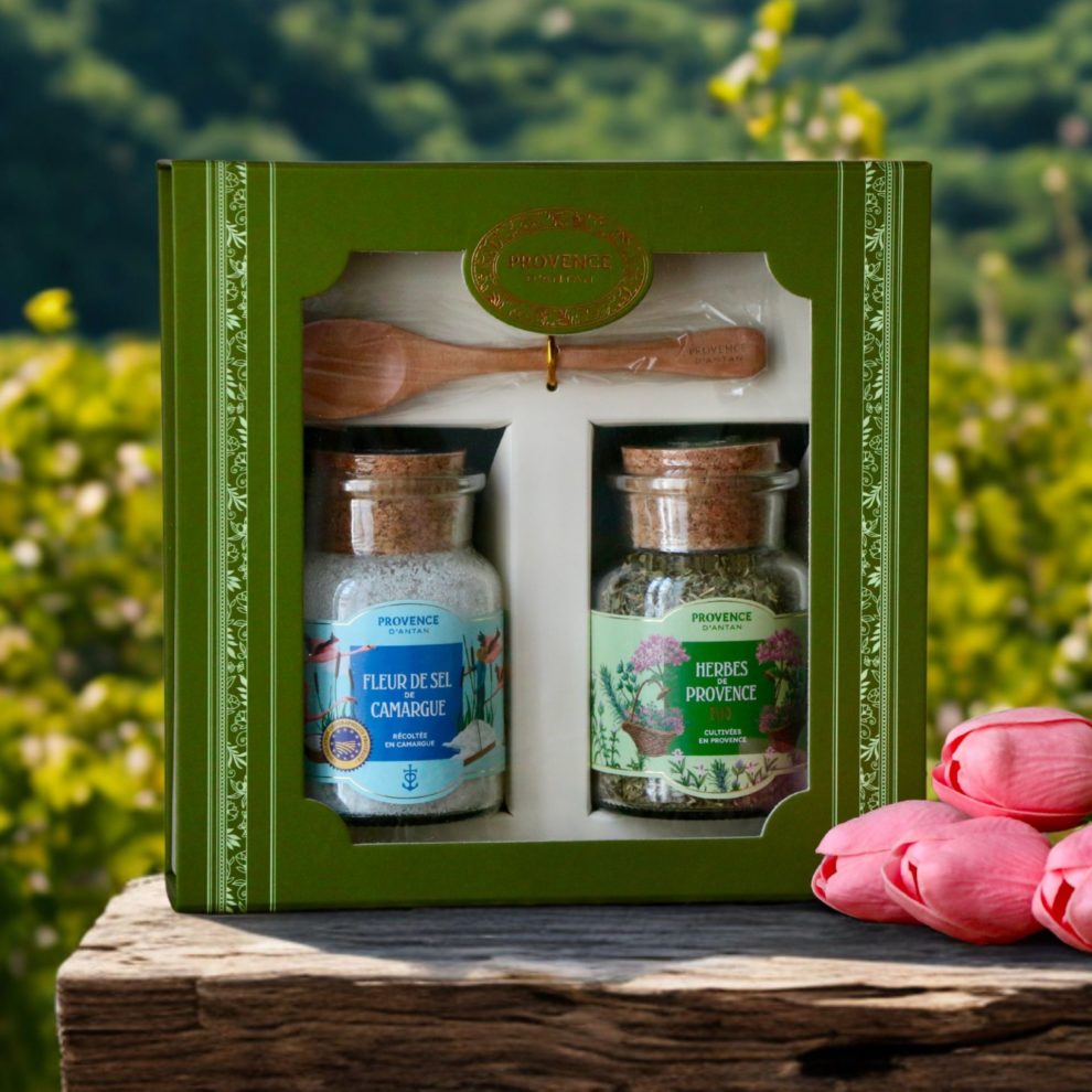 Sublimez vos créations culinaires avec ce coffret Fleur de Sel de Camargue IGP et Herbes de Provence BIO ! Accompagnées d’une élégante cuillère en bois, ces saveurs authentiques de la Provence ajouteront une touche gourmet à chacun de vos plats. Offrez-vous ou offrez à vos proches ce coffret, une expérience gustative et aromatique inégalée.