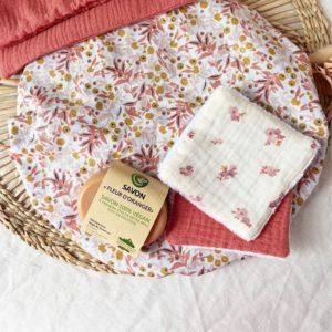 Votre coffret contient : 2 lingettes démaquillantes, un savon à la fleur d’oranger (100g), une charlotte de douche.