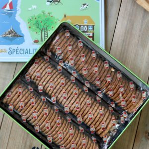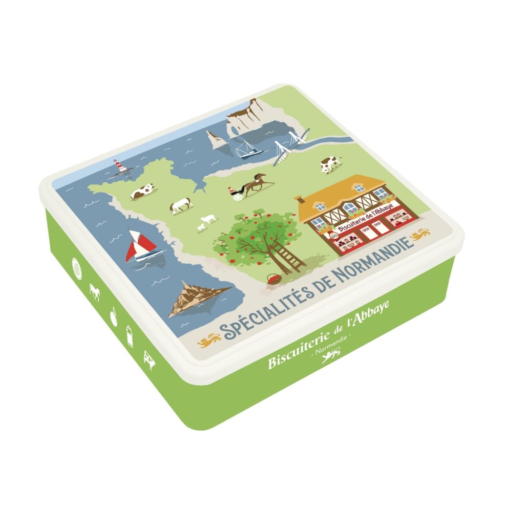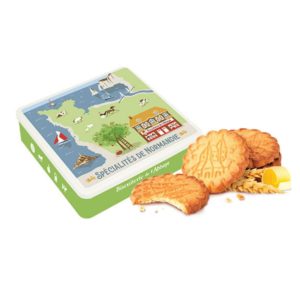 Savourez les authentiques Sablés de l’Abbaye, fabriqués selon la recette traditionnelle de 1941 avec du beurre d’Isigny AOP. Présentés dans une jolie boîte en métal décorée, ils offrent un goût généreux et typique de la Normandie.