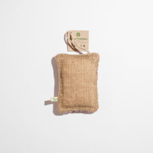 Fini les éponges jetables ! Cette éponge est lavable, réutilisable avec un intérieur en kapok (fibre végétale). Une face grattante en lin et une face absorbante en éponge coton.