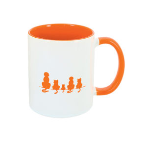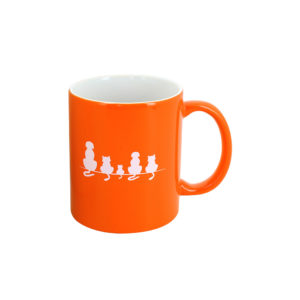 Les mugs sont bicolores, avec un extérieur blanc et un intérieur orange.