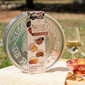 Craquez pour notre Boîte métal Assortiment Apéritif ! Retrouvez dans cet assortiment vos recettes préférées de croquets et sablés : Croquets aux olives de Nyons AOP, nos Croquets Ail de la Drôme IGP, Sablés BIO Poivron & Piment d’Espelette AOP et nos Sablés BIO Aubergine & Thym dans ce coffret cadeau prêt à offrir