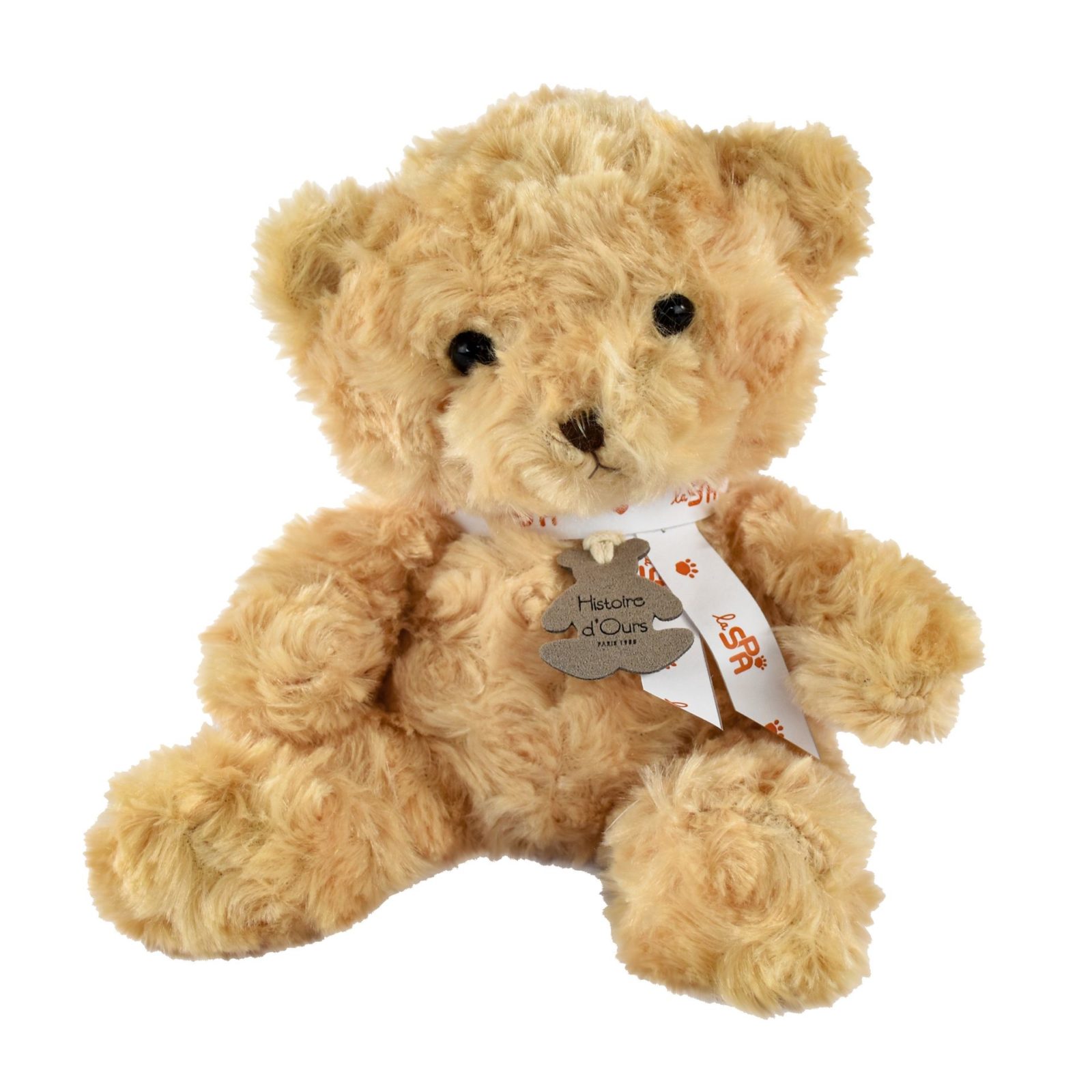 Canon ce petit ourson ! Avec sa bonne bouille, son corps souple facile à manipuler et son poil à frisottis miel tout doux, c’est un ours contemporain au petit look traditionnel qui rassurera et séduira petits et grands. Haut. 21 cm.