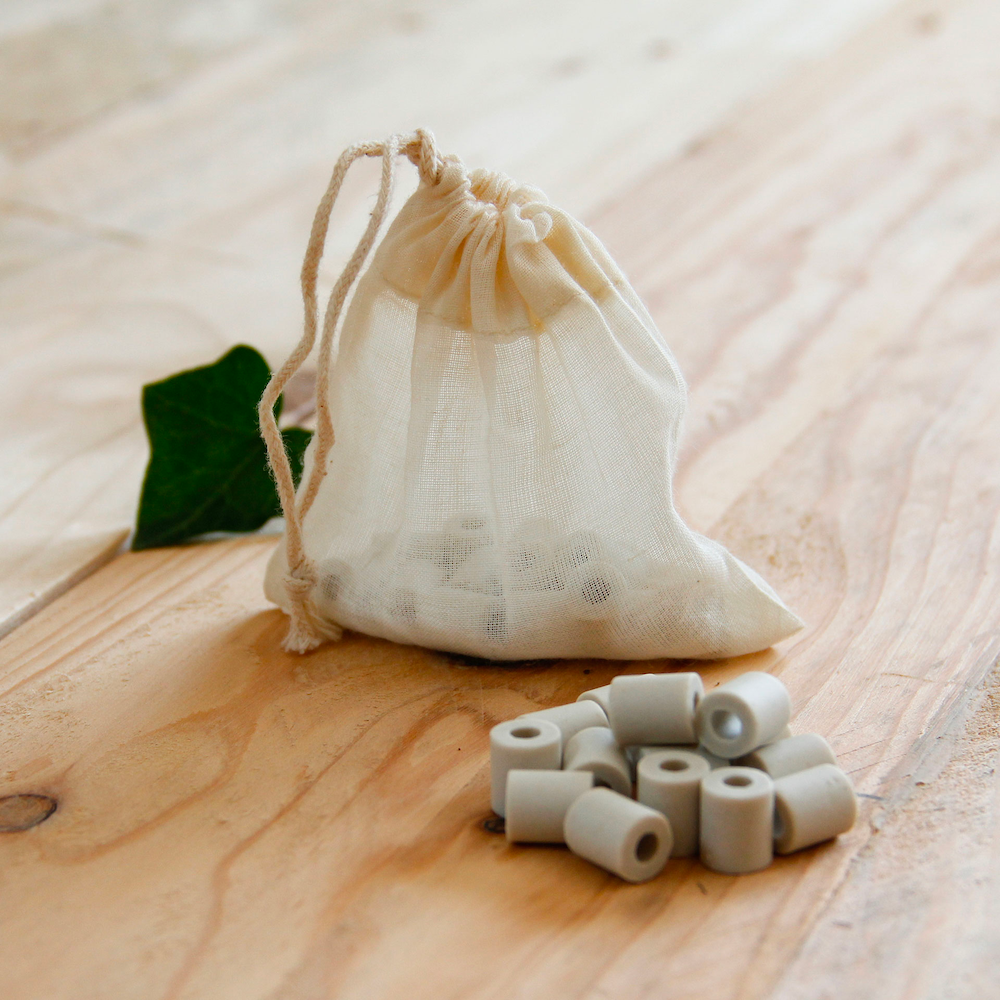 Lot de 15 perles de céramique capables de filtrer 1 litre d’eau.