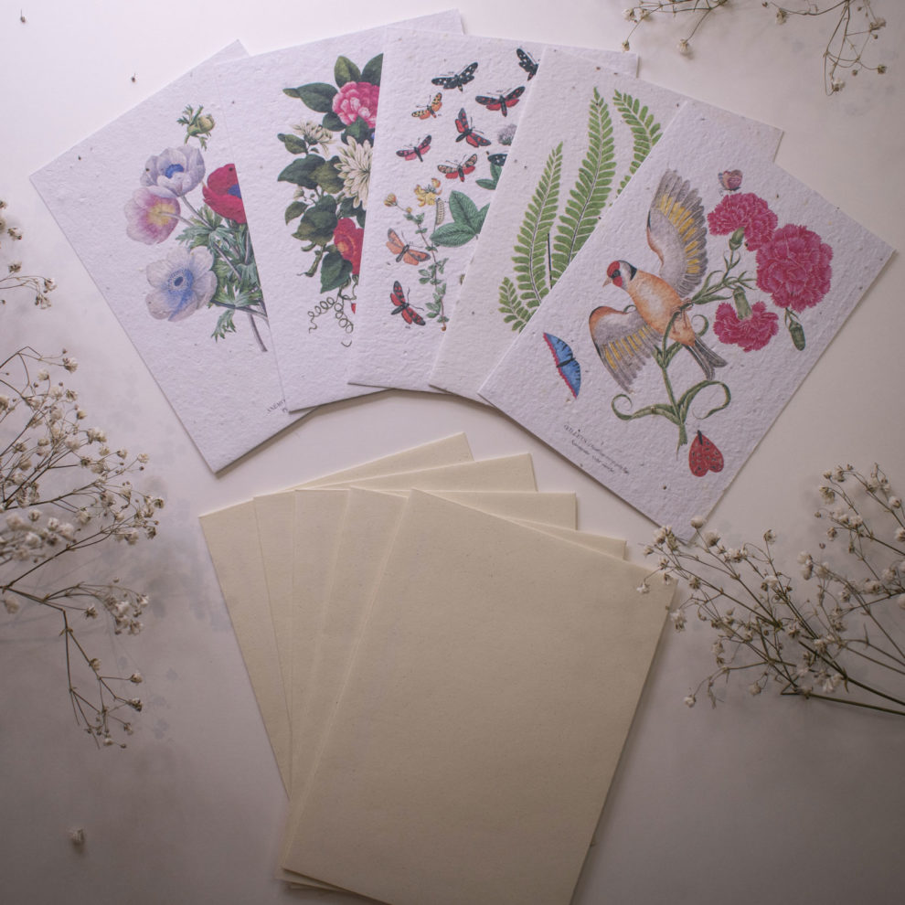 Un joli set de correspondance en papier 100% biodégradable, zéro déchet, 100% fleurs qui favorise la biodiversité ! Voilà les principaux impacts positifs de ces 5 belles cartes à planter et de leur enveloppes fabriquées artisanalement en France.