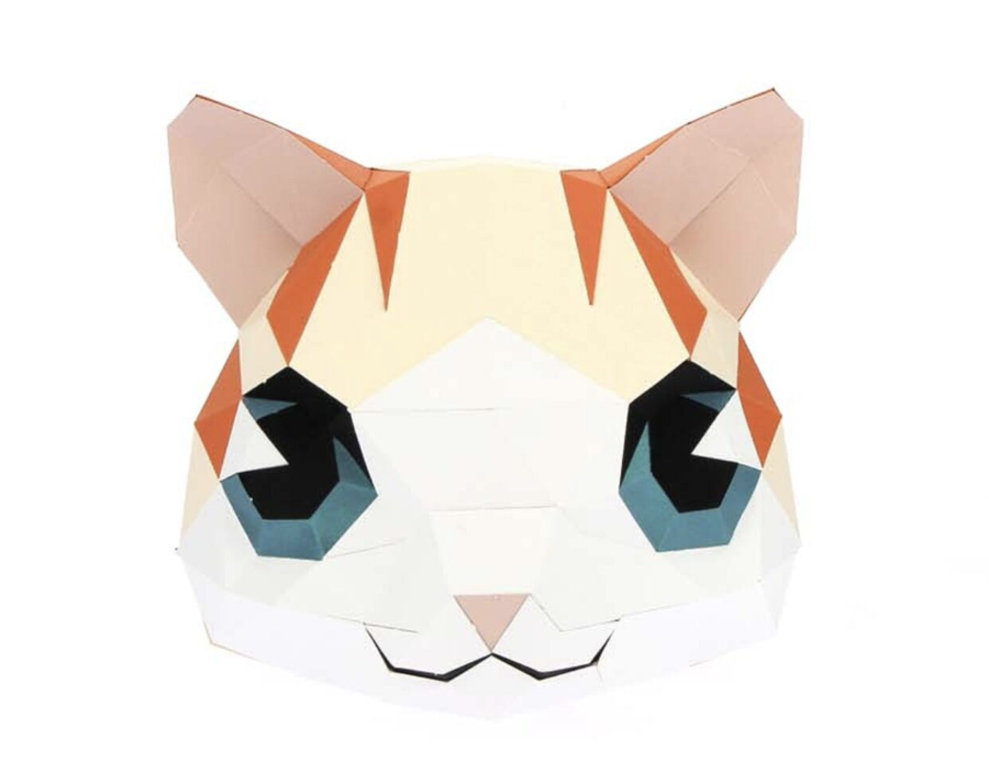 Montez cette tête de chat roux en origami 3D ! Avec son regard perçant et son attitude observatrice, il trônera fièrement sur votre mur, observant tout autour de lui.